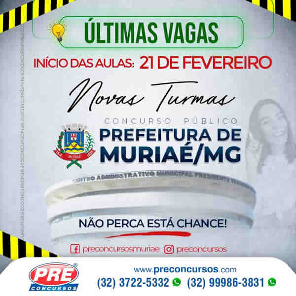 CONCURSO DA PREFEITURA DE MURIAÉ É COM O PRÉ-CONCURSOS