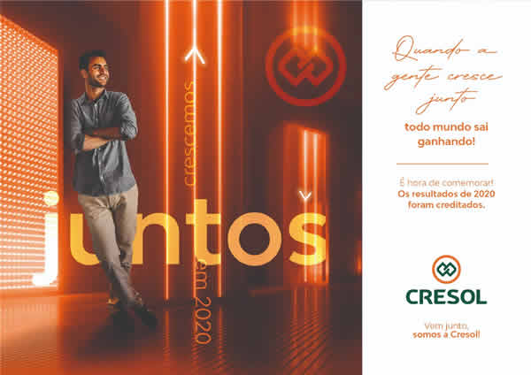 Quanto mais o cooperado movimenta na cooperativa mais retorno ele tem, pois a participação nos resultados são características do Cooperativismo. Nesse sentido, a Cresol Minas Gerais em 2020 apresentou aos associados o melhor resultado da história da Cooperativa, com crescimento de 63% nos ativos administrados e R$ 2,9 milhões em sobras.