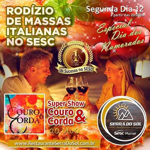 Venha celebrar o Dia dos Namorados no Serra do Sol Sesc. Nesta segunda-feira (12), a partir das 20h, o restaurante abre com uma programação especial, incluindo rodízio de massas italianas e música ao vivo.