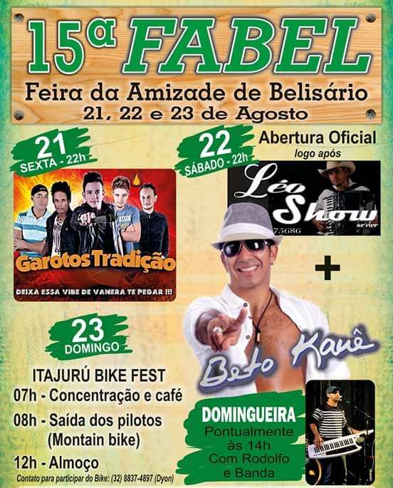 Foi divulgada a programação da 15ª Feira da Amizade de Belisário (FABEL), que este ano acontece entre os dias 21 e 23 de agosto, no distrito de Muriaé.