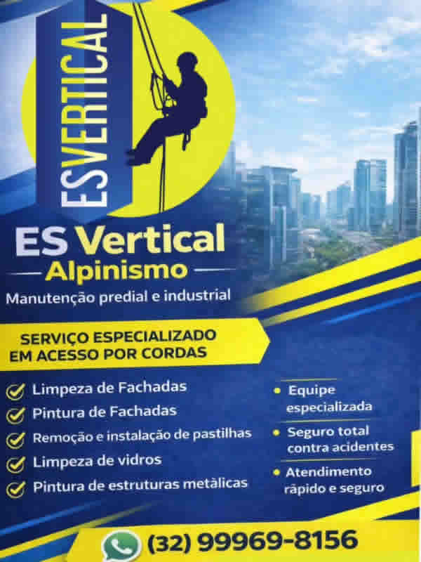 A ES Vertical Alpinismo é uma empresa especializada em serviços de pintura/limpeza predial e industrial.