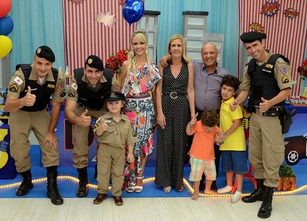 Para a festa, o pequeno Davi vestiu até farda e ficou surpreso com a chegada dos policiais militares no evento. “Ele ficou muito emocionado! Foi um momento único! Somos gratos a PM!”, agradeceu a mãe.