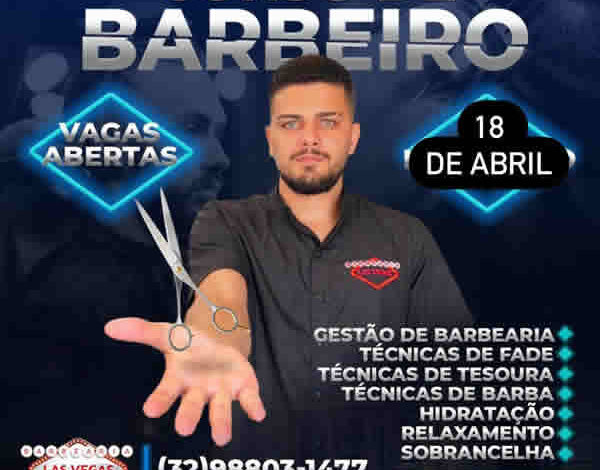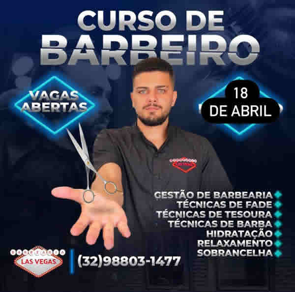 Início do curso é dia 18 de abril. Para mais informações, vá até a Barbearia Las Vegas ou chame no WhatsApp.