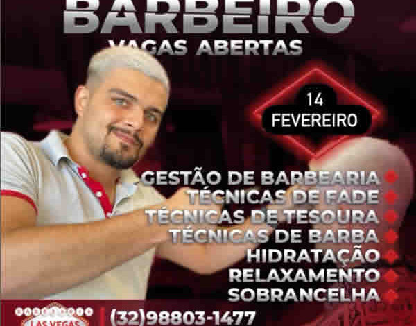 Quer se tornar um profissional da área? Invista em você e garanta já sua vaga! . Início do curso é dia 14 de fevereiro. Para mais informações, vá até a Barbearia ou nos chame no WhatsApp. . As aulas serão ministradas toda terça -feira de 20hrs às 22hrs na, 💈Barbearia Las Vegas endereço: 📍 Constantino Pinto, 55. SL. 217F – Centro -Muriaé/MG. Inscrições e dúvidas pelo whatsapp: 📞98803-1477 🖥