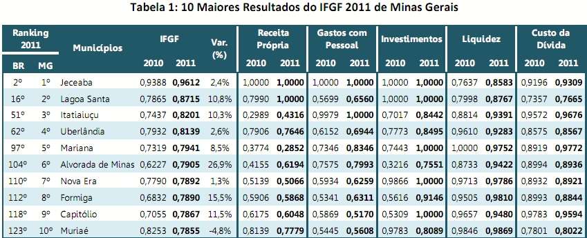 Veja o resultado do IFGF 2011 de Minas Gerais (clique na imagem para ampliar):