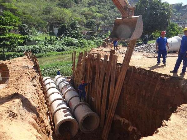 As obras de drenagem pluvial estão avançado em Muriaé. Quatro frentes de trabalho realizam o serviço no município, favorecendo o escoamento geral das águas das chuvas – na Santa Rita, Barra, Dornelas e Primavera.
