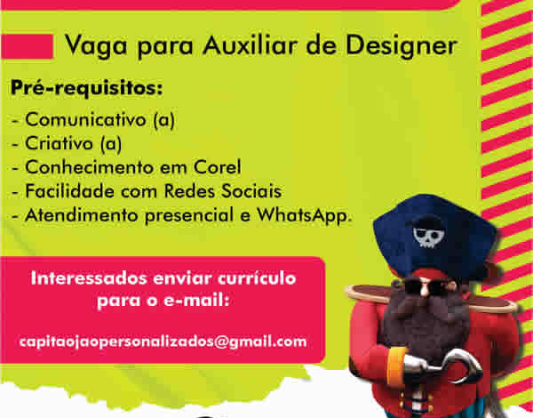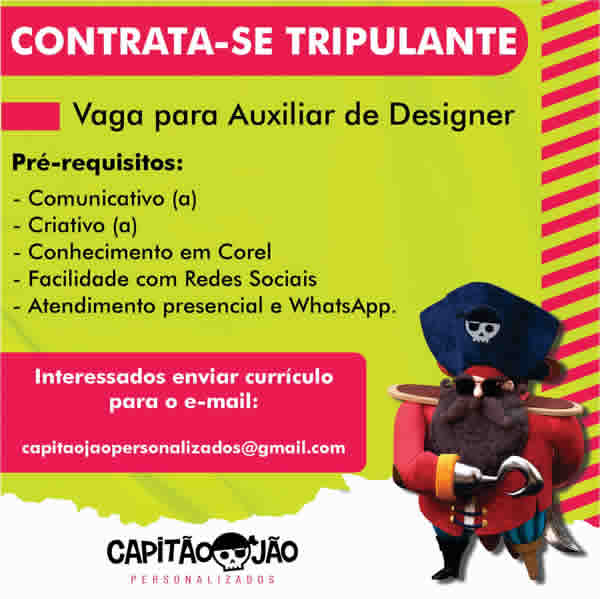 Atenção Marujos!! 🦜☠️🚢 O Capitão Jão está em busca de mais um tripulante para compor o seu time!