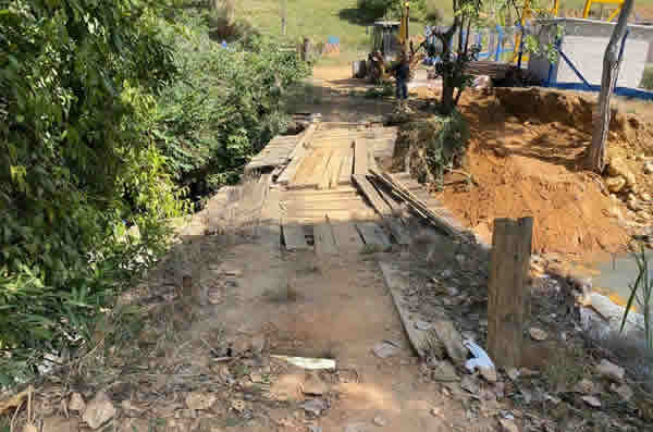 A ponte antiga de madeira foi destruída pelas fortes chuvas registradas no início deste ano, fazendo com que a travessia no local estivesse em situação precária e acontecendo de forma insegura. A base em concreto, que também sofreu danos com as cheias, será reconstruída.
