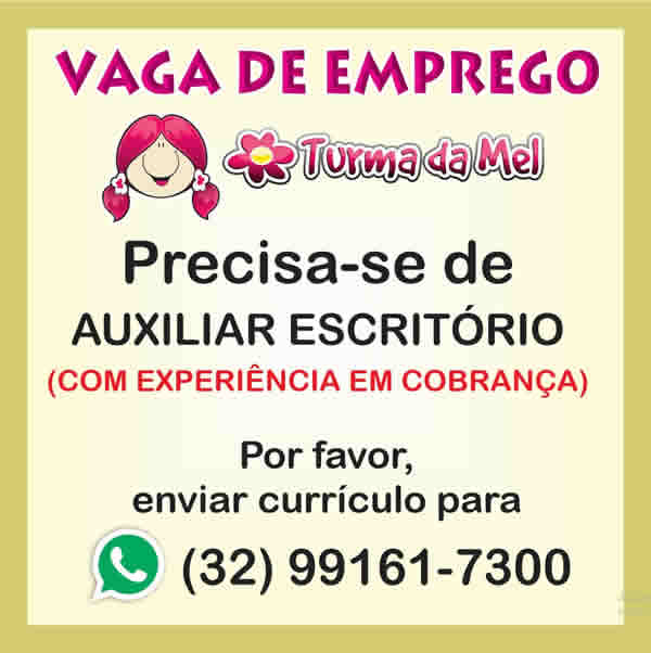 A confecção Turma da Mel está com vaga de emprego em aberto em Muriaé.