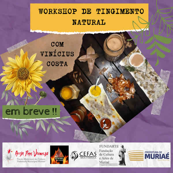 Já foi realizada a primeira etapa do projeto “Workshop: Introdução ao Tingimento Natural” idealizado pelo artista muriaense Vinícius Costa e que conta com recursos do Fundo Municipal de Cultura, através da Lei de Incentivo à Cultura “Alcir Pires Vermelho” edital de 2021.