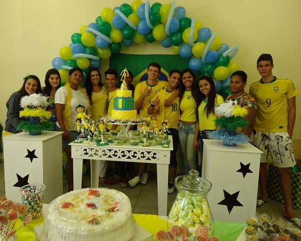 Cada detalhe do tema “Brasil na Copa do Mundo” foi minuciosamente pensado, desde os objetos que enfeitaram o ambiente até o bolo decorado. Para a professora Júnia Vieira, envolvida no desafio, os alunos não mediram esforços para terminar a tarefa. “Fiquei muito satisfeita com o empenho de todos. Até mesmo quando ficaram sabendo que não teriam verba para a comida e os enfeites, eles não se abalaram e gastaram por conta”, orgulha-se a professora. O gasto estimado com a organização do evento foi de R$ 500,00. O valor foi dividido entre os 22 alunos e alguns professores.
