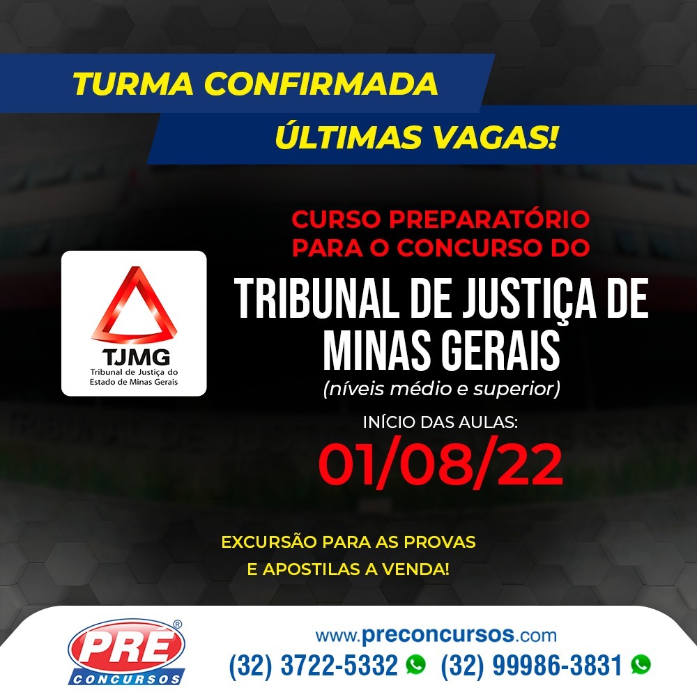 Nos últimos concursos do TJ / MG foram dezenas de aprovados pelo PRÉ – CONCURSOS, inclusive p/ Muriaé