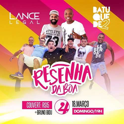 Domingo é dia de resenhar com os amigos, tomar uma gelada e curtir um pagode de verdade. O Batuque de 2 convida o grupo Lance Legal pra uma super roda de samba. E no intervalo tem o DJ Bruno Bidu.