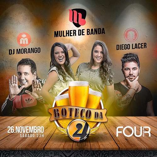 Uma das melhores festas da Four vem com uma edição mais que especial, com grandes atrações para uma noite memorável: Mulher de Banda + Diego Lacer + DJ Morango. Para fechar a noite ainda tem o residente Marcelo Brazil.