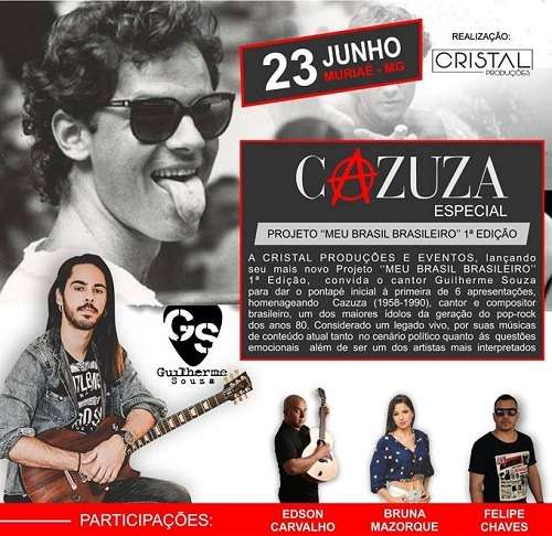 O projeto está em sua primeira edição e apresentará, em cada uma delas, canções de artistas como: Rita Lee, Legião Urbana, Elba Ramalho, Tim Maia e Grupo Tribalistas. Neste sábado, Guilherme Souza cantará as melodias de Cazuza. Os músicos Edson Carvalho, Bruna Mazorque e Felipe Chaves farão participação especial com ele. A cada final de semana, intérpretes da região estarão homenageando um dos clássicos da MPB, levando música aos muriaeenses e exaltando a cultura brasileira. A realização é da empresa Cristal Produções e Eventos.