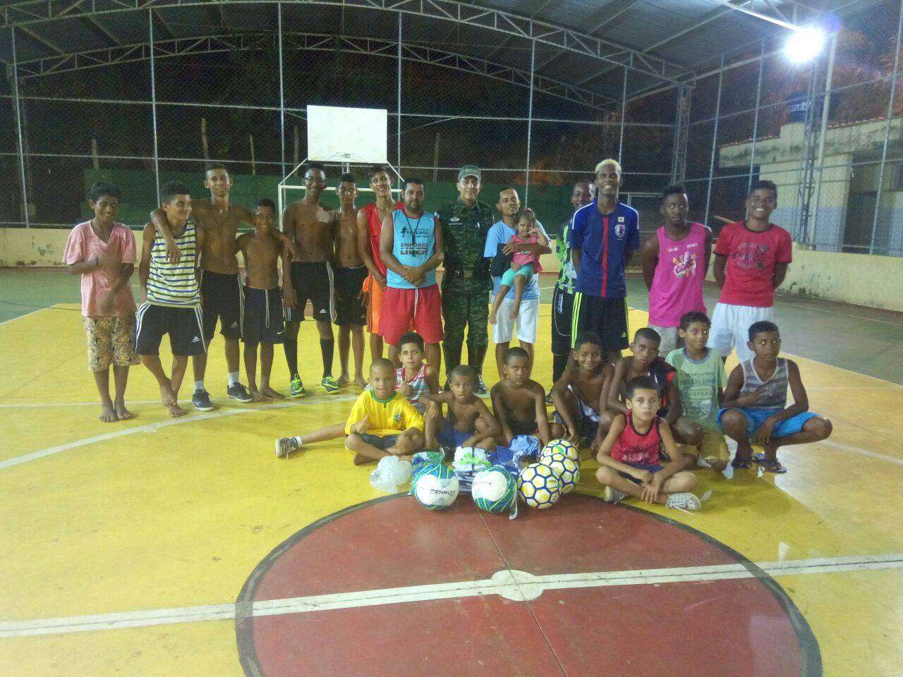 O 5º Grupamento de Polícia de Meio Ambiente de Muriaé, pertencente a 4ª Cia PM Ind de Meio Ambiente e Trânsito Rodoviário, em parceria com a Lely’s Soluções Ambientais Ltda e com Pátio Itajuru, ofertaram cinco bolas de futebol de salão, três jogos de coletes de treino (30 coletes) e uma bomba de ar ao projeto “Escolinha de Futebol Padre Tiago”.