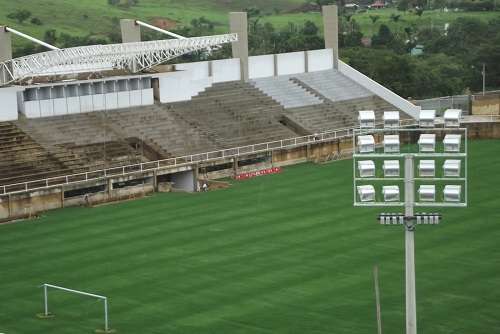 O estádio Soares de Azevedo, em Muriaé, já conta com o sistema de iluminação instalado. Os postes têm 20 metros de altura e a quantidade de refletores necessária para se ter uma iluminação profissional.
