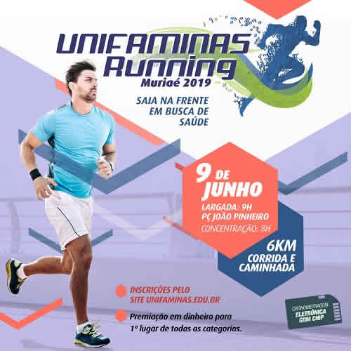 Estão abertas as inscrições para o UNIFAMINAS Running 2019. A corrida vai acontecer no dia 9 de junho, com largada a partir das 9h, na Praça João Pinheiro.