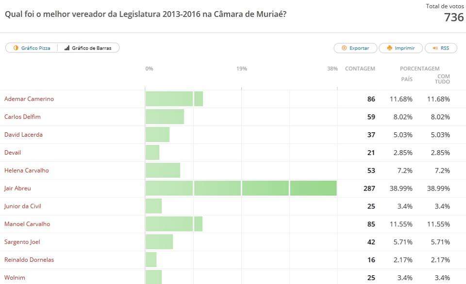 Foram contabilizados um total de 736 votos na enquete e Jair Abreu obteve 287 votos (38,99%). Em seguida apareceram os vereadores Ademar Camerino com 86 votos (11,68%) e Manoel Carvalho com 85 votos (11,55%). O menos votado foi Reinaldo Dornelas com 16 votos (2,17%).
