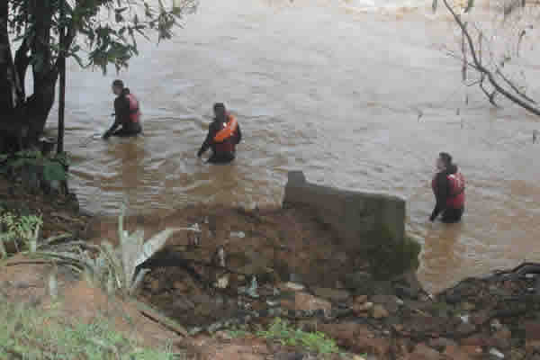 Populares acionaram a Polícia Militar informando que um homem estaria agredindo uma criança com socos, na ponte sobre o rio Piranga, entre os bairros Palmeiras e Triângulo. Após as agressões teria jogado a criança dentro do rio e se atirado em seguida.
