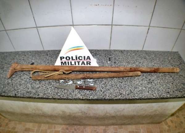 Os militares foram para o endereço onde o jovem estava e, ao perceber a chegada da equipe, ele foi para o quintal do imóvel e de lá portando uma faca, um porrete e uma enxadinha ameaçou os policiais, desafiando-os a entrar para pegá-lo. Na sequência, ele desapareceu pelos fundos da casa e depois surgiu correndo e atacou os policiais.