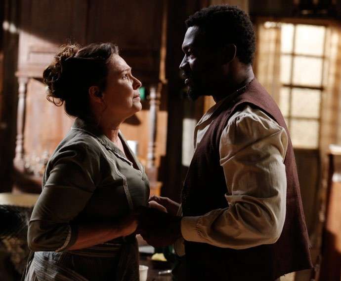 O ex-escravo interrompe o momento para confessar seu receio à amada, que responde: “Também estou com medo… Não posso negar… Mas o que vou fazer com o que estou sentindo?”. Contente com o que ouve, ele se declara à mãe de Anita (Letícia Persiles) e Pedro (Emilio Dantas): “Amo a senhora… Tanto!”.