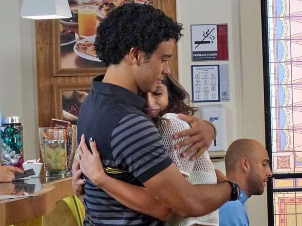 Encantado com a doçura da estudante, o auxiliar de limpeza não resiste e a beija. Os dois curtem o momento, mas o clima entre os dois é interrompido com a chegada de Aurélia (Ana Carbatti), que chama a atenção do filho: “Emerson! A sua irmã na UTI e você aí de beijinhos, meu filho!”.