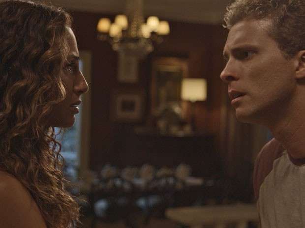 Regina (Camila Pitanga) ficou abalada depois de saber que Vinícius (Thiago Fragoso) ainda está casado com Cris (Tainá Müller). O advogado tenta convencê-la que está em processo de divórcio, mas quem disse que ela acredita? “Não vem com ‘lenga-lenga’ de advogado para enrolar! Se espremer, o caldo que sai é o mesmo. Você é outro cafajeste fingindo que era solteiro!”, diz.