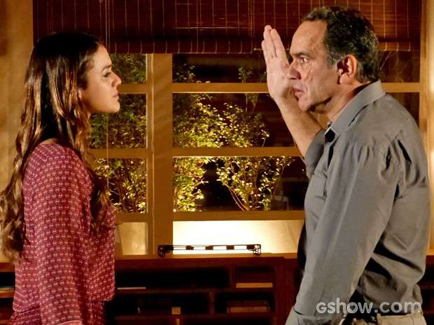 Virgílio (Humberto Martins) vai ao apartamento de Luiza (Bruna Marquezine) disposto a ter uma conversa definitiva com a filha. “Tentei acreditar que o Laerte (Gabriel Braga Nunes) poderia ter mudado, melhorado, quem sabe até se tratado”, diz, completando que o flautista é uma pessoa doente, com um comportamento patológico e obsessivo.