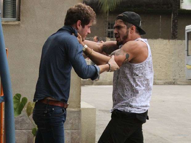 “Esse cara não tem juízo. É um moleque. Precisa aprender”, diz Grego, desafiando o rival. Ben perde a cabeça e parte para cima do cara, cheio de raiva. O quebra-pau rola solto, sobrando até para Lindomar (Gil Coelho), que tenta separar a briga.