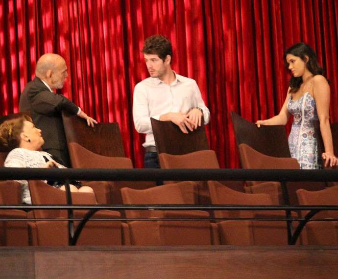 Mari (Bruna Marquezine) e Benjamin (Maurício Destri) chegam a tempo de ‘salvar’ dona Izabelita (Nicette Bruno), que assistia a uma ópera ao lado de Dom Peppino (Lima Duarte) no Teatro Municipal.