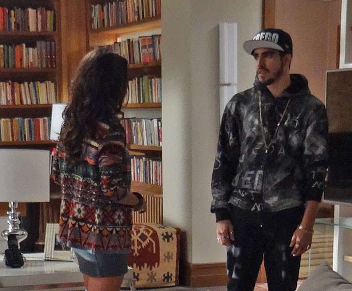 O mandachuva elogia a casa da patricinha. Ela faz as honras da casa, diz para ele se sentir à vontade e se declara. Cheia de atitude, Bruna parte para cima de Grego e tenta beijá-lo, mas o chefão se esquiva e lembra que ela é irmã de Mari (Bruna Marquezine). “Aí, Bruninha, na moral, eu nem devia ter subido, tá ligada? Cê é irmã da Marizete”.
