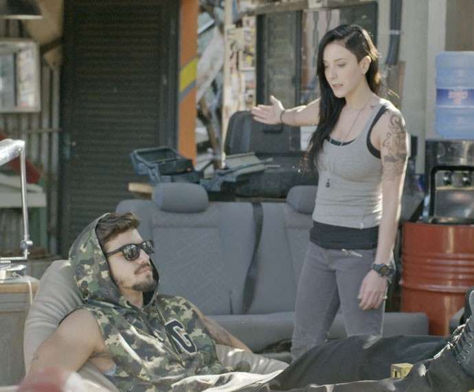 Ximena (Caroline Abras) saca muito bem quando Grego (Caio Castro) anda nas nuvens, pensando em alguém. É só o chefão de Paraisópolis dar menos importância ao que está acontecendo na quebrada que a gata já prevê tudo.