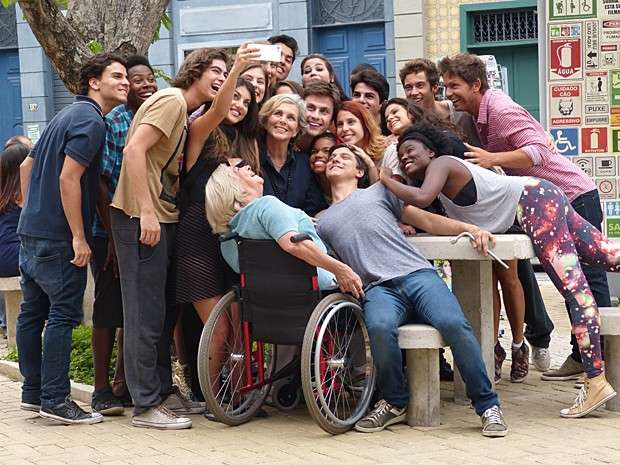 Entre várias selfies, a atriz responde às curiosidades da turma da Ribalta, e faz a alegria dos alunos. René (Mário Frias) vê a galera reunida, e reencontra a amiga de velhos tempos: “Virei professor aqui da Ribalta, mas acho que quem tá dando aula hoje aqui é você”, explica o professor.