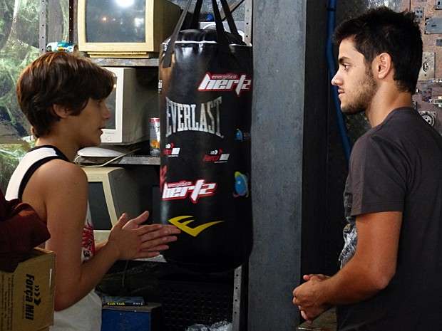 Karina (Isabella Santini) não está mais aguentando essa tal de Vicki (Manu Gavassi) toda hora na cola de Pedro (Rafael Vitti). A loirinha aproveita para descontar sua raiva no saco de pancadas do QG. Cobra (Felipe Simas) vê que a lutadora tá toda trabalhada na revolta e tenta dar uma palavra de apoio. “Não fica bolada por causa dessa tal de Vicki, não, Karina. Sou mais você”, diz. Own, fofo!