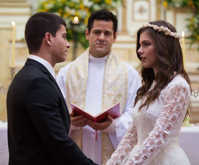 É isso mesmo que a gente tá vendo? Será um sonho ou realidade? Bianca (Bruna Hamú) e Duca (Arthur Aguiar) no altar? O fato é que os dois lindos estão vestidos de noivos e fazem declarações apaixonados, um ao outro: “Foi você que me mostrou o que é o amor”, diz o lutador para a aspirante a atriz.