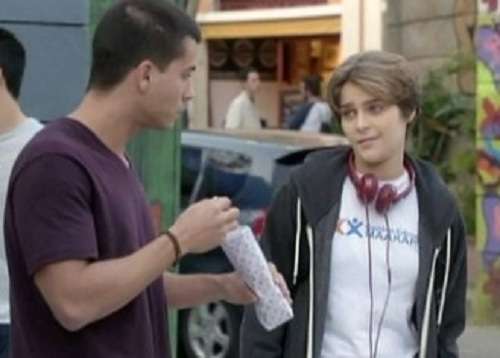 Duca (Arthur Aguiar) encontra Karina (Isabella Santoni) no ponto de ônibus. Logo de cara, ela tira uma onda da cara do garoto: “Você? Andando de ônibus?”. Claro! O lutador está machucado, só ônibus para ir ao médico… Depois eles ainda brincam mais um pouco e sobem no busão.