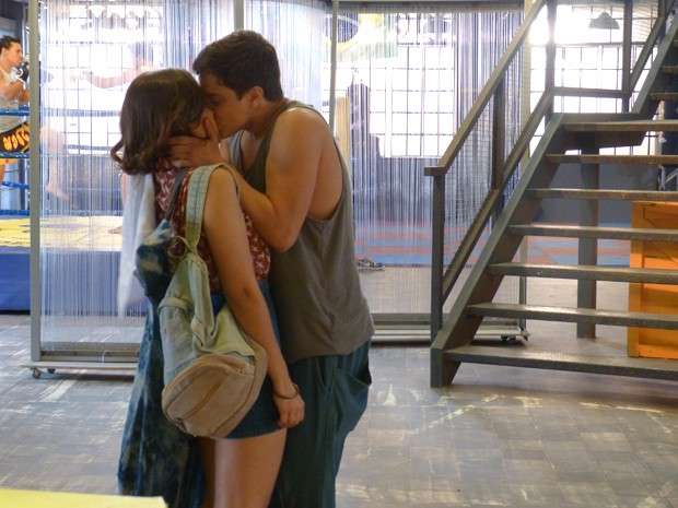 Depois, na Fábrica, Jeff (Cadu Libonati) encontra Mari e pergunta quando ela vai para Joaçaba. A cantora conta a novidade para o bailarino que, em um impulso, tasca um selinho na amiga!