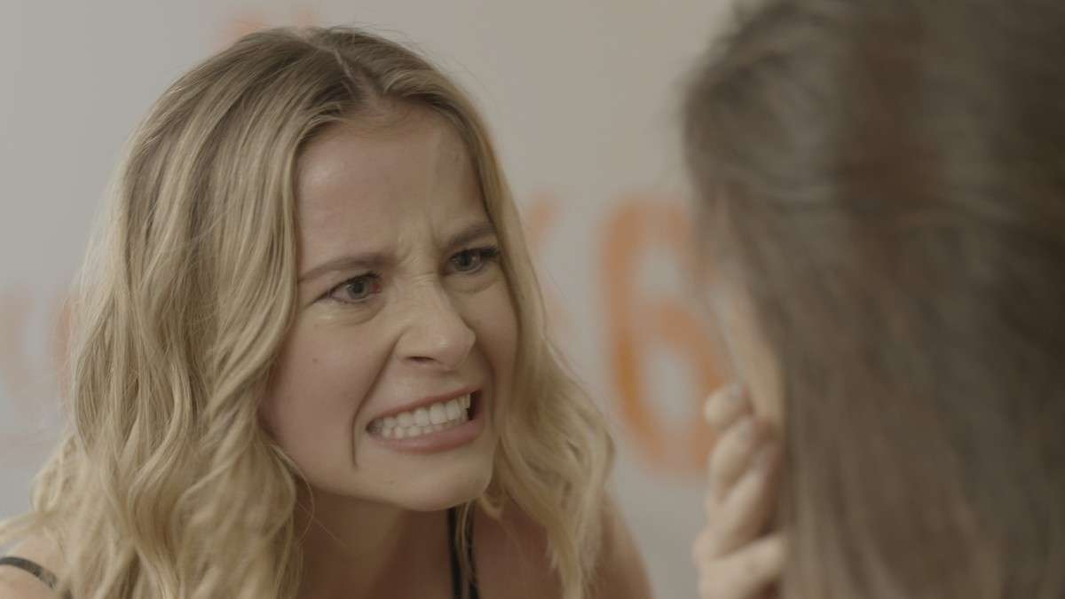 Clara tenta acalmar a loira. “Não faz isso, Bárbara, porque você vai ficar triste, vai olhar pra trás e se arrepender, mas aí sim vai ser tarde”, diz a estagiária, sem ser ouvida por Bárbara, que toma uma decisão radical: “Eu vou me arrepender é se deixar a Joana mandando em tudo e em todo mundo aqui dentro, toda prosa. Vou fechar essa porcaria, sim! Vou acabar com a Forma e com a alegria da bastarda!”.