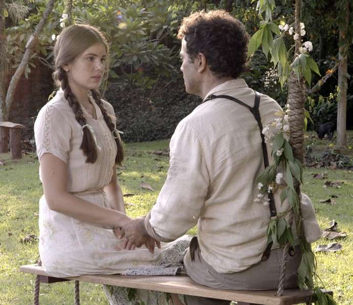 Eponina (Rosi Campos) já percebeu que Zé dos Porcos (Anderson Di Rizzi) gosta da sobrinha e o aconselha a dizer a verdade para Mafalda (Camila Queiroz): “Toma corage, Zé dus Porco. Fala mais ela. (…). Mais eu lhe desejo boa sorte”. O serviçal, então, procura a amada, que está cabisbaixa por ter sido enganada mais uma vez por Romeu (Klebber Toledo). “Tomara qui num vorta nunca mais”, desabafa a caipira.