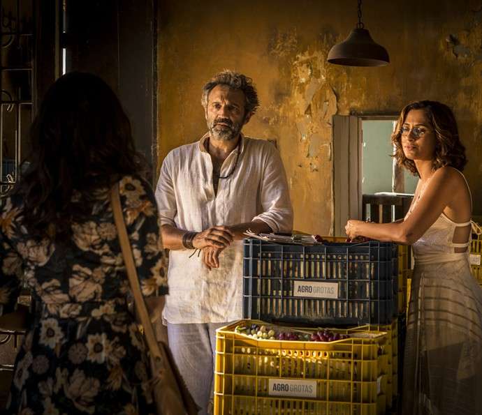 Luzia (Lucy Alves) chega na cooperativa e encontra Santo (Domingos Montagner) trabalhando com Tereza (Camila Pitanga). Abalada, ela pensa em dar meia volta, mas o sertanejo nota sua presença e a questiona: “Que é que você veio fazê aqui?”.