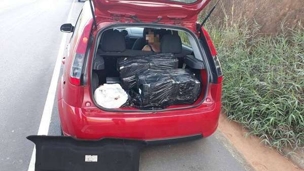 Diante da suspeita, foram iniciadas buscas no automóvel, sendo encontrado no porta-malas do carro 87 tabletes de maconha. A droga saiu de São Paulo e seria levada para Ubá.