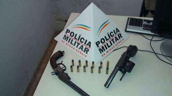 Por volta das 9h30, a Polícia Militar, dando prosseguimento ao rastreamento no intuito de localizar os autores dos disparos, foi até a residência de um dos suspeitos, onde, após sua esposa ter franqueado a entrada no imóvel aos policiais, foram encontrados em um dos cômodos da casa, dentro de uma mochila, dois revólveres calibre 38, sendo um deles sem numeração, ambas municiadas com cartuchos intactos e outras munições do mesmo calibre.