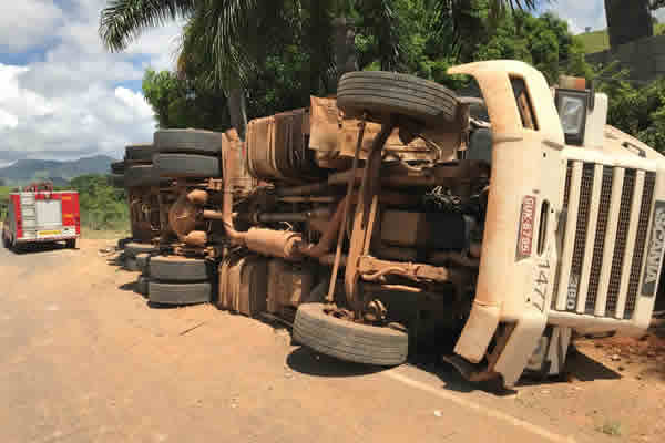 Carreta tomba na BR-356, em Muriaé