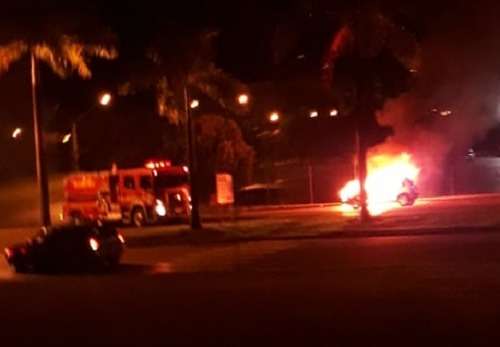 Carro é destruído em incêndio próximo ao UNIFAMINAS