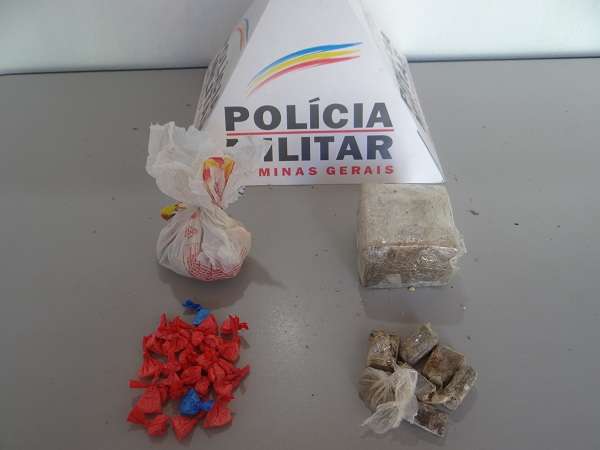 No total, foi apreendida uma barra grande de maconha, de aproximadamente 400 gramas, sete tabletes menores da substância, 26 papelotes de cocaína e cerca de 100 gramas de crack em pedra.