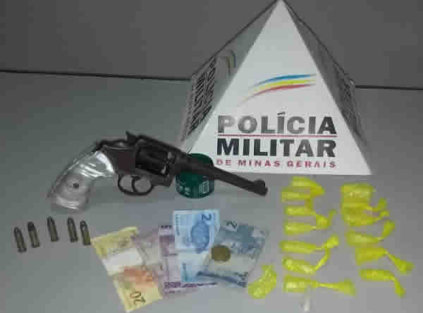 Após busca pessoal, os policias lograram êxito em encontrar com o mesmo um revólver calibre 38, carregado com cinco munições intactas, e 14 pinos de cocaína.
