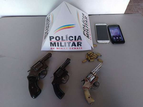 Os militares localizaram ainda o outro suspeito do roubo. Na residência dele foram encontradas três armas de fogo, dois revólveres calibre 32 e um revólver calibre 38.