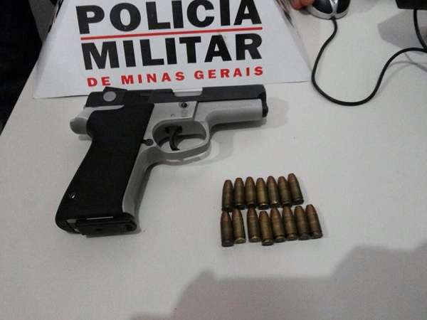 Por volta das 22h30, a Polícia Militar recebeu informações que davam conta de que um indivíduo estaria pelo bairro Padre Tiago, no interior de um bar, portando uma arma de fogo. Viaturas realizaram um cerco ao local e conseguiram surpreender o autor, que estava sentado no bar. Após busca pessoal, foi localizado na cintura do mesmo uma pistola calibre 9mm, arma de uso proibido/restrito, municiada com quinze munições intactas, além de dois aparelhos celulares. Indagado sobre o fato, o autor relatou que a arma seria de seu irmão, que pediu que ele a guardasse. Ele foi preso e conduzido à Delegacia de Polícia.