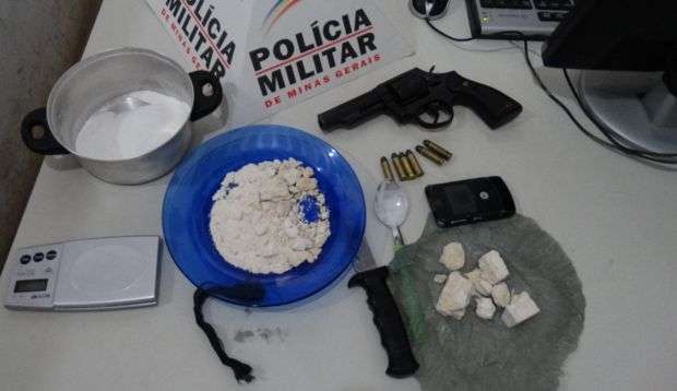 Devido informação de que um dos envolvidos realizava tráfico de drogas em sua casa, e o outro está associado, os policiais vistoriaram o imóvel, onde localizaram uma balança de precisão, um invólucro plástico grande contendo pedras de cocaína, um prato com outra porção grande esfarelada da mesma substância, uma panela com fermento em pó, uma faca e uma colher, todos dispostos de forma próxima sobre um fogão, dando a entender que preparavam a droga para comércio.